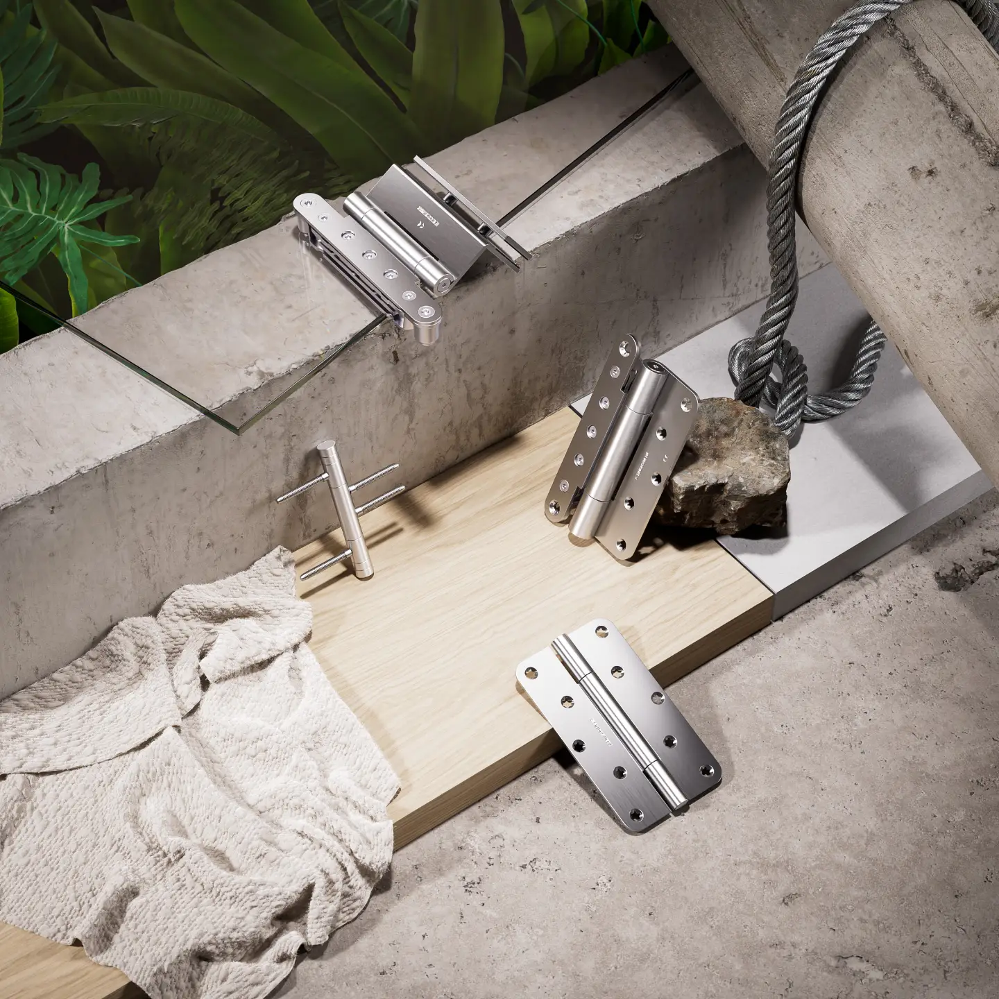 Anwendungsbilder zeigen die hochwertigen Produkte in reduzierten, atmosphärischen Umgebungen. Ästhetische Material-Produktcollagen setzen die Familien, aber auch die einzelnen Bandsysteme in Szene.